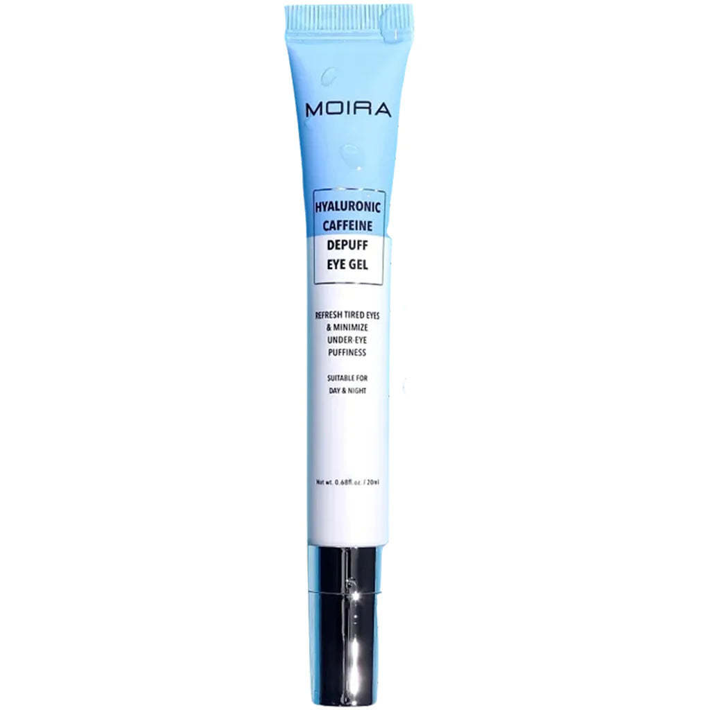 MOIRA Hyaluronic Caffeine Depuff Eye Gel proporciona un efecto refrescante instantáneo y ácido hialurónico ideal para refrescar los ojos cansados y minimizar la hinchazón debajo de los ojos. Esta fórmula combina ácido hialurónico, glicerina y cafeína que hidrata y rellena visiblemente las líneas finas mientras reduce la hinchazón. Seguro para uso debajo de los ojos. Libre de alcohol, aceite y parabenos. Adecuado para el día y la noche.